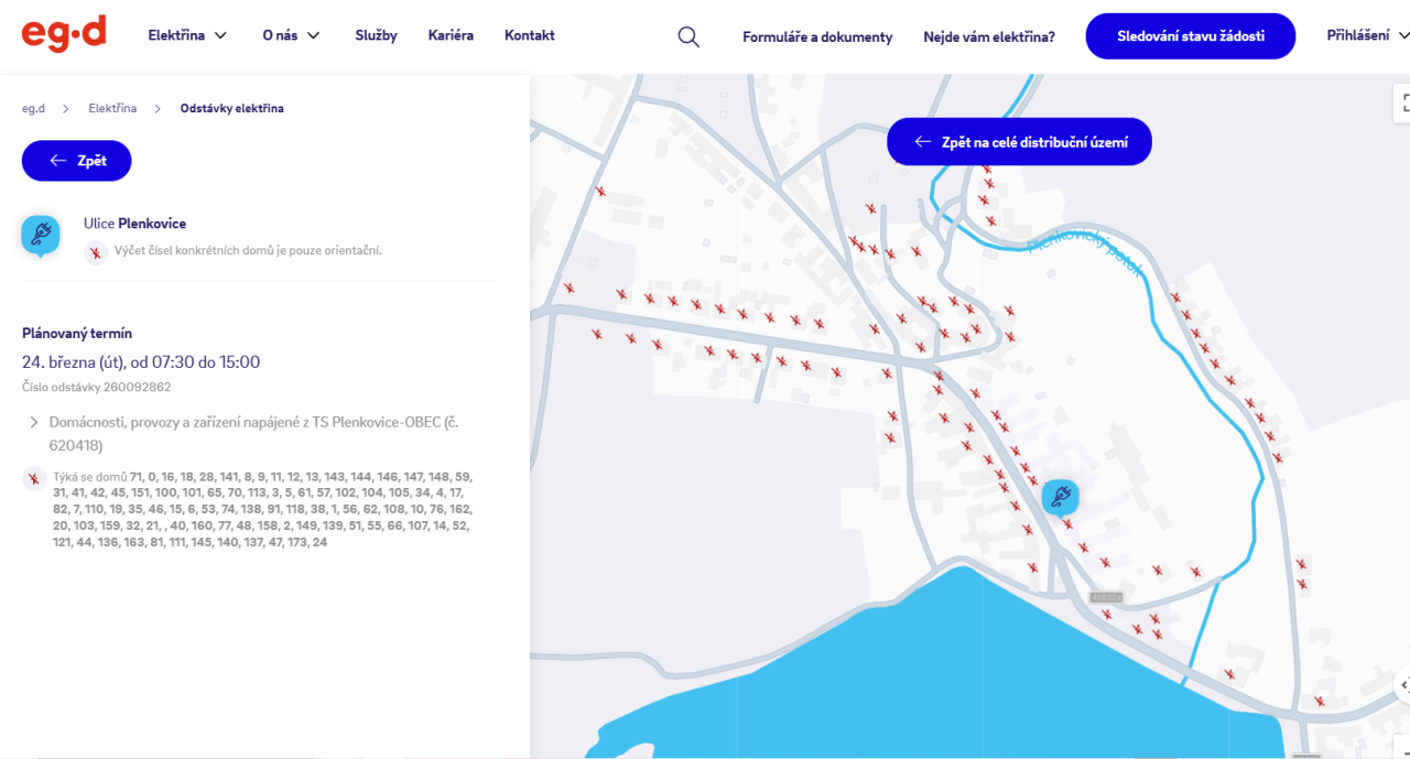 Vypnutá trafostanice Plenkovice OBEC. OD 7:30 do 15:30 hod
