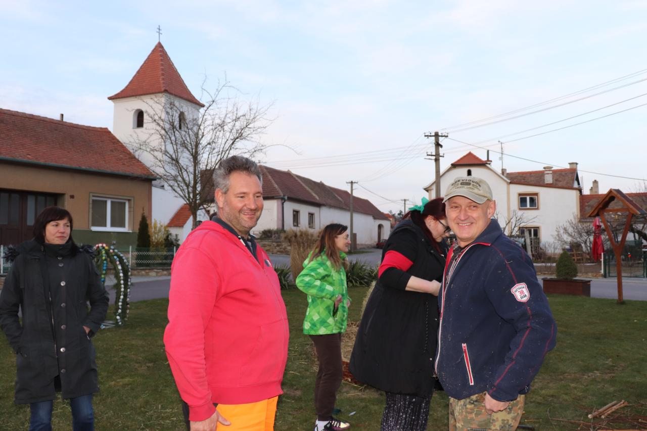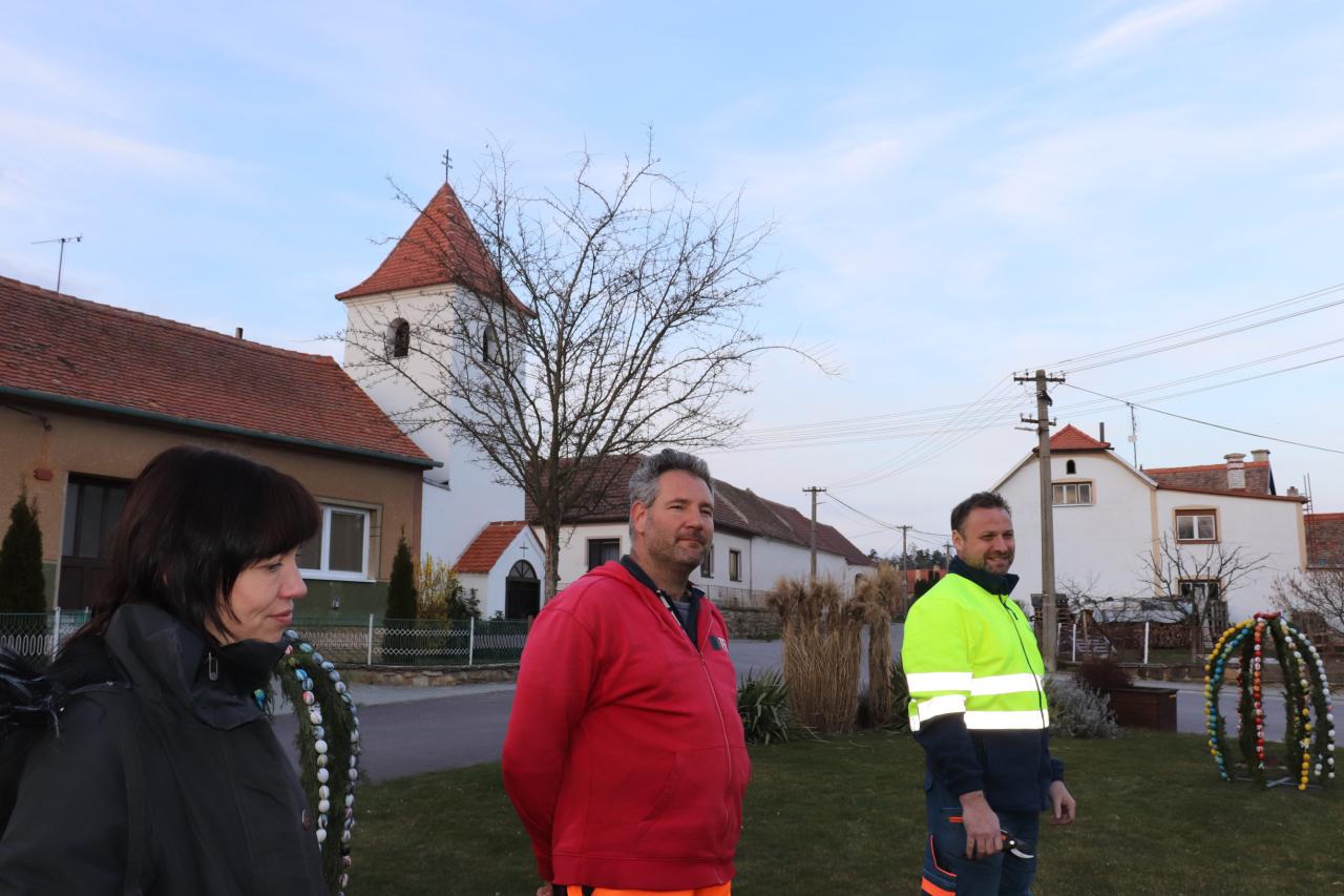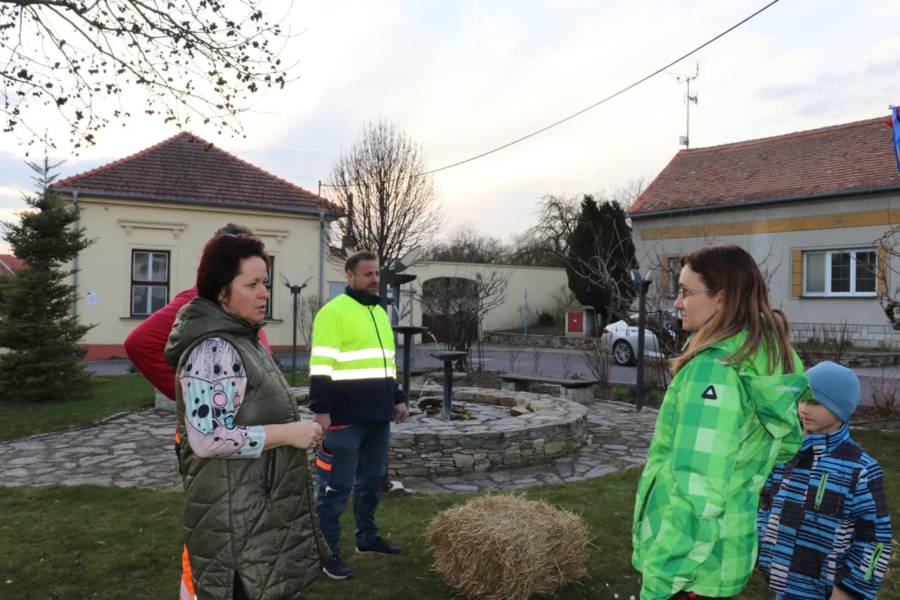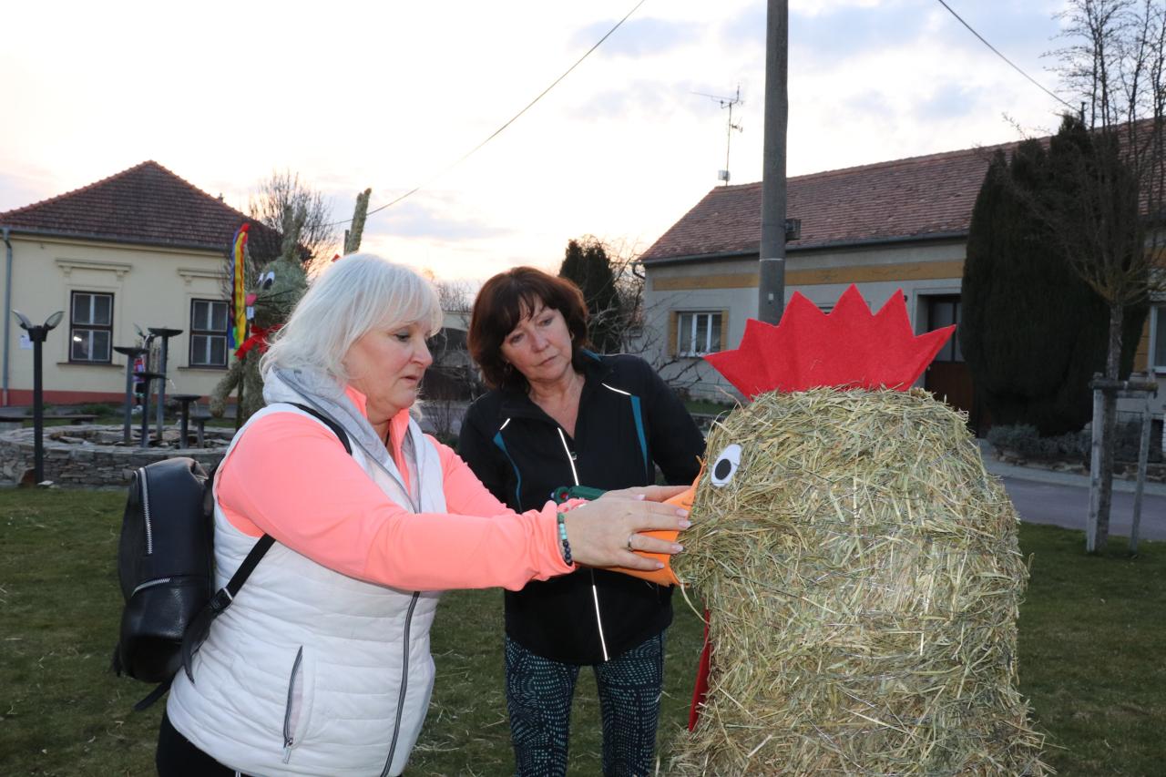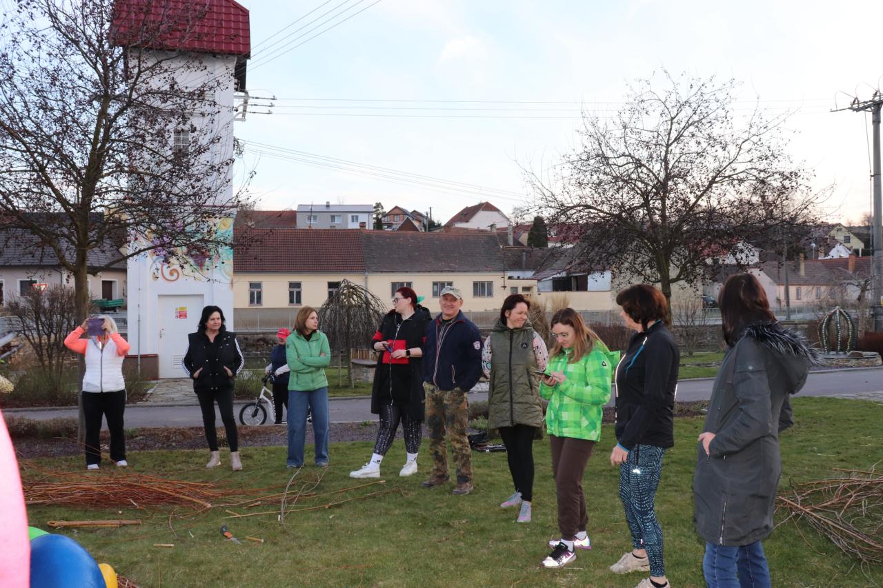 Velikonoční výzdoba na návsi z tvoření ze sena - slepice a králíci ze dne 20. 3. 2026
